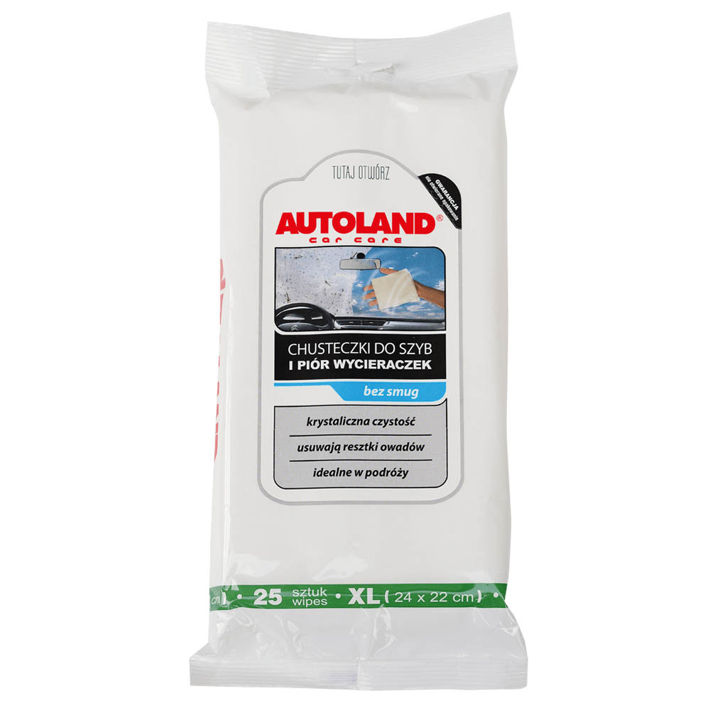 Autoland Chusteczki do szyb 25szt Zalety produktu Autoland Chusteczki do szyb 25szt- Błyskawiczne czyszczenie szyb bez konieczności używania wody i dodatkowych akcesoriów