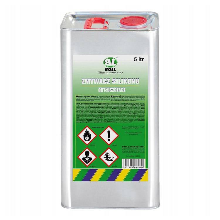 Boll zmywacz silikonu 5L jest środkiem doskonale nadającym się do usuwania wszelkich tłustych plam, smoły, asfaltu, środków do konserwacji podwozia, zabrudzeń oraz rozpuszczania sztucznych żywic.