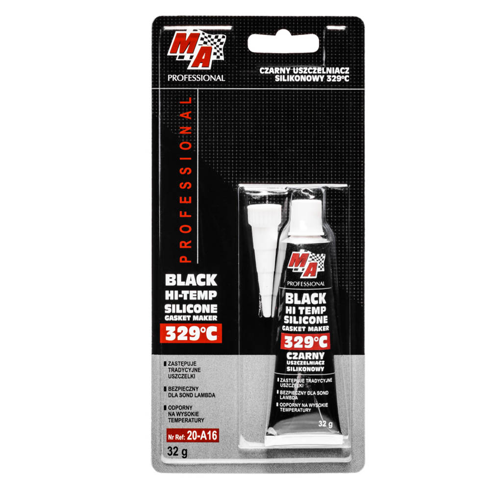 MA Professional uszczelniacz silikonowy czarny 329°C tworzy wytrzymałe uszczelnienia odporne na ekstremalnie wysokie temperatury w silnikach i układach wydechowych. Czarny silikon utwardza się w kontakcie z powietrzem, tworząc trwałą i elastyczną barierę z doskonałą przyczepnością do metali, stopów i innych materiałów konstrukcyjnych.