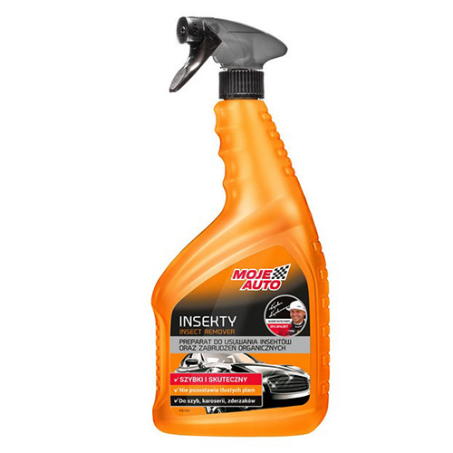 - Moje Auto INSEKTY 750ml gotowy do użycia preparat przeznaczony do usuwania trudnych zabrudzeń organicznych z powierzchni szklanych, a także z elementów lakierowanych, gumowych i plastikowych.