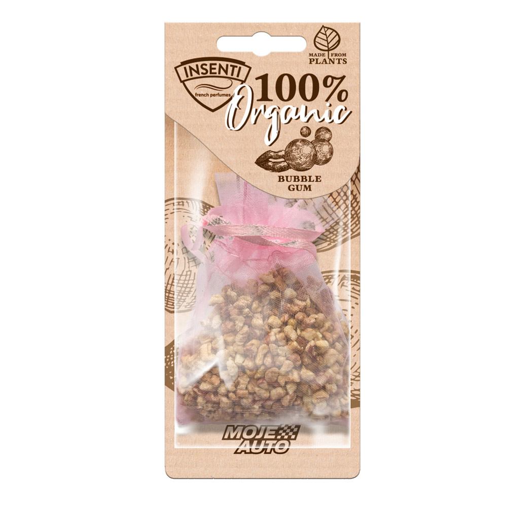 • Moje Auto Insenti Organic Bubble Gum 18G wypełniony zapachowymi granulkami, które są nasączone wysokiej jakości perfumami.