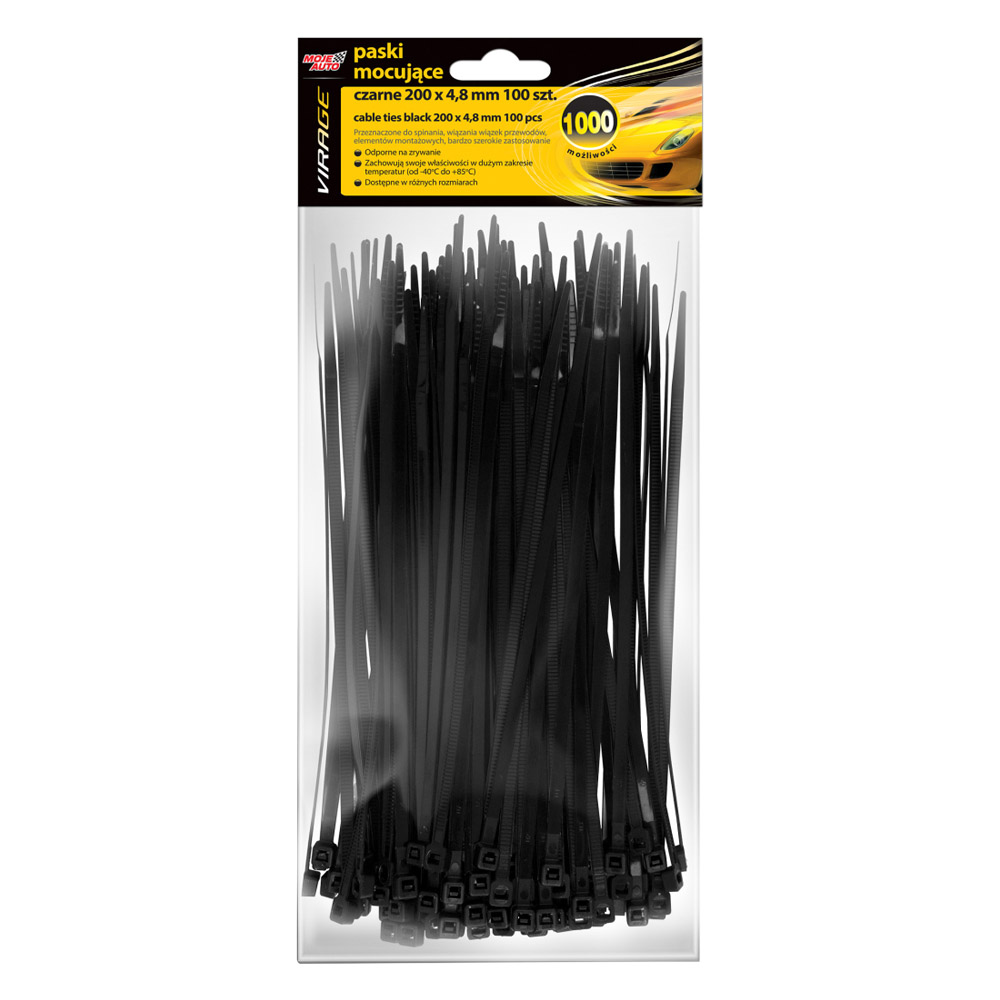 VIRAGE PASKI MOCUJĄCE CZARNE 200 x 4.8MM 100SZT